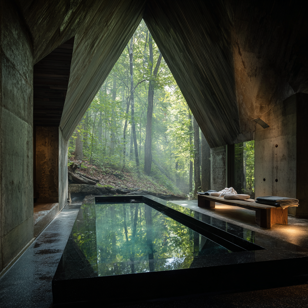 After your final banya round and plunge, you sink into an outdoor mineral pool heated to 104°F by a wood-fire boiler. The water carries iron, magnesium, calcium, and trace lithium — the same composition found in Europe's most celebrated healing springs.